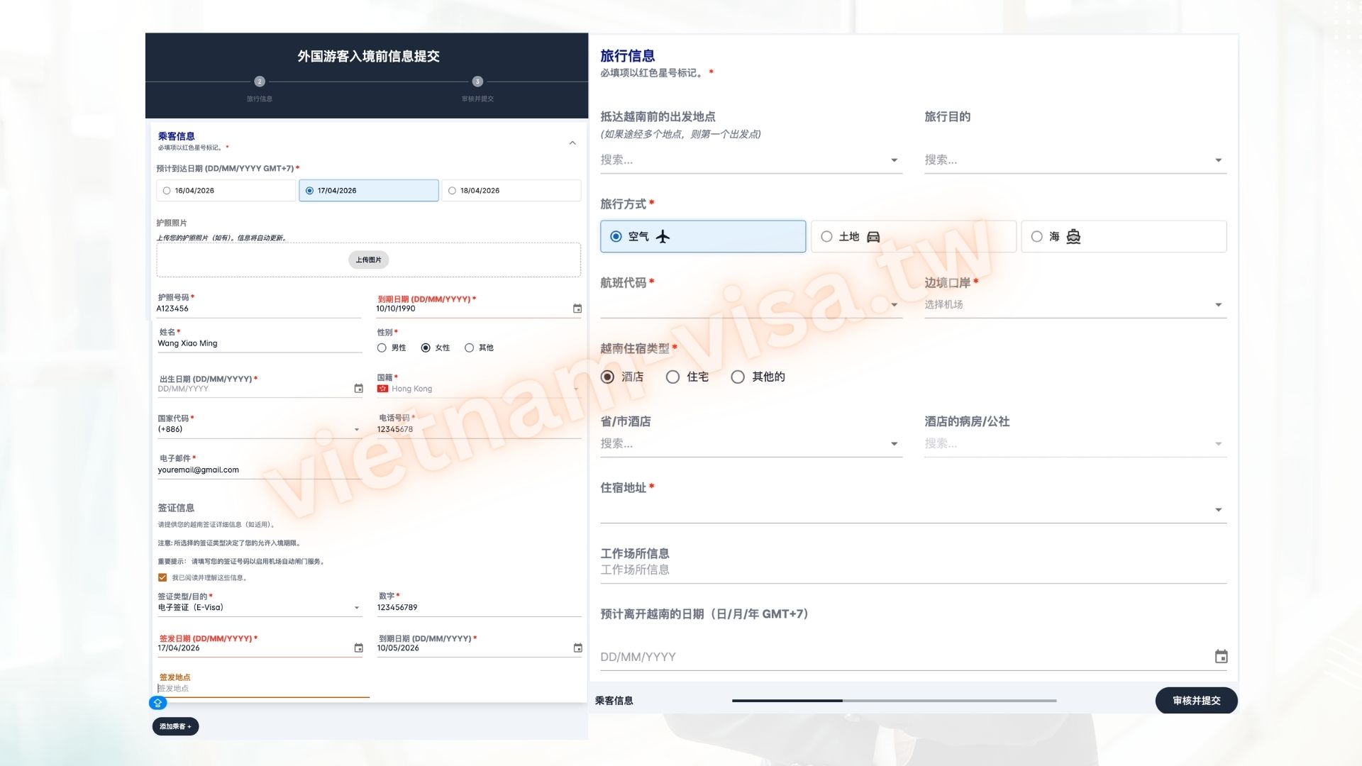 - 在越地址: 飯店名稱或在越南的居住地址。